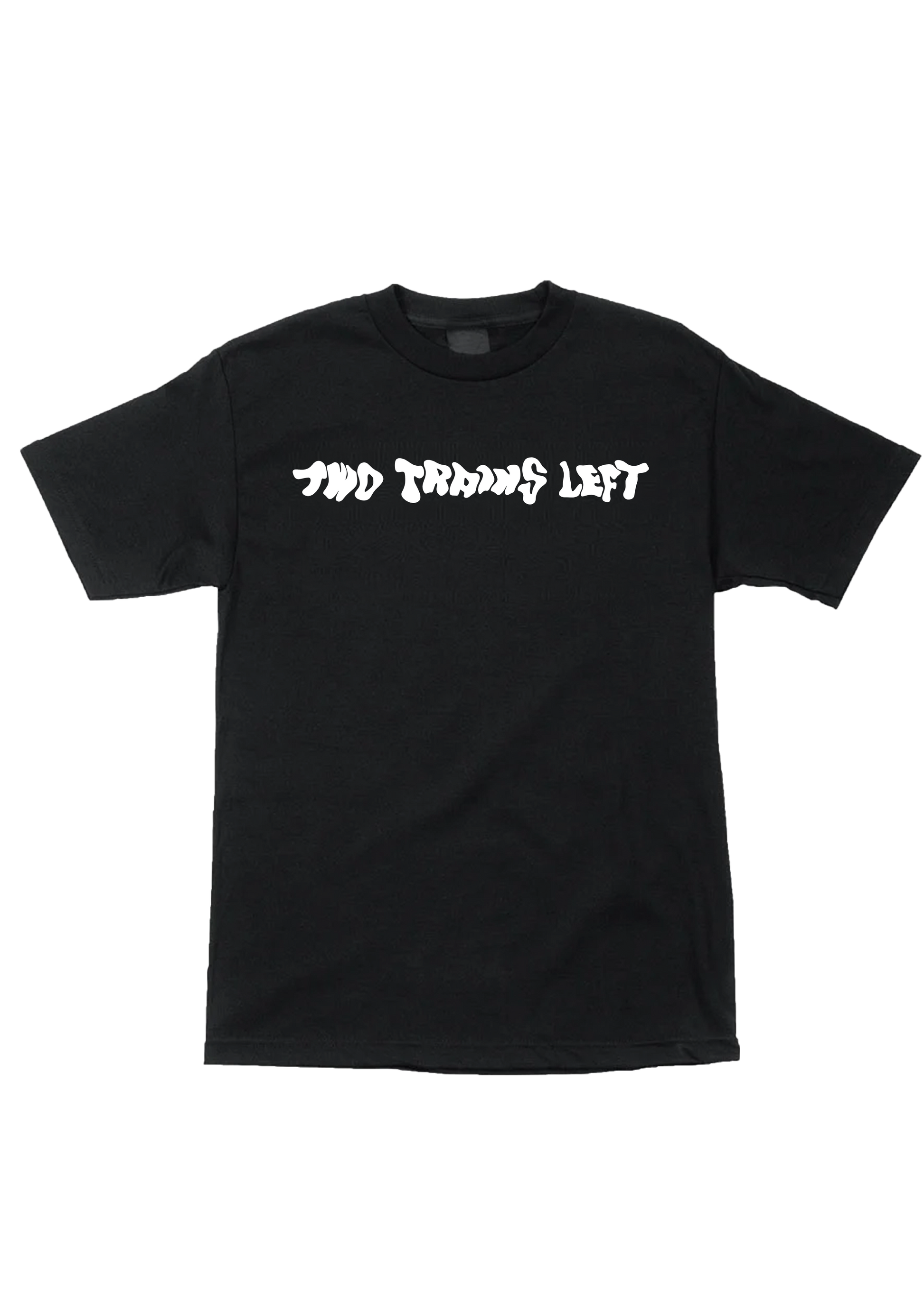 Black Short Sleeve t-shirt featuring Two Trains Left's logo